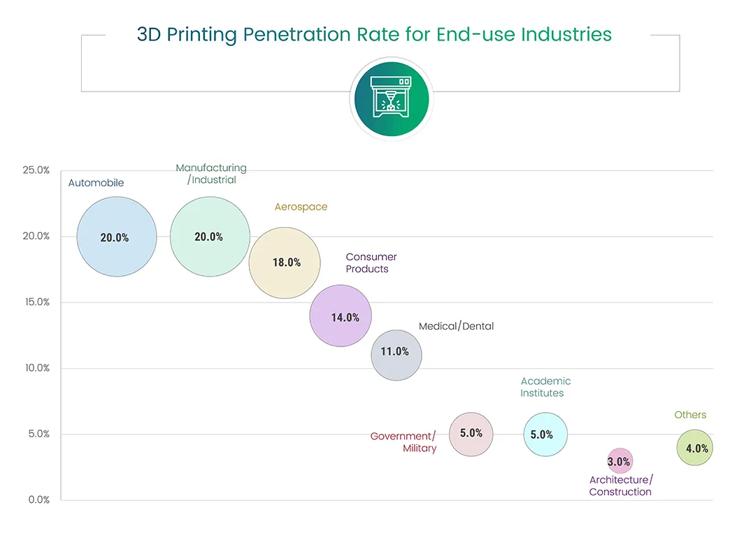 As 3D printing industry aims to widen the applications across different industry verticals, we at Meticulous Research® are continuously tracking different use cases of 3D printing and enabling global players to direct their innovation and product enhancement activities towards achieving stable revenue growth in this highly competitive market environment.